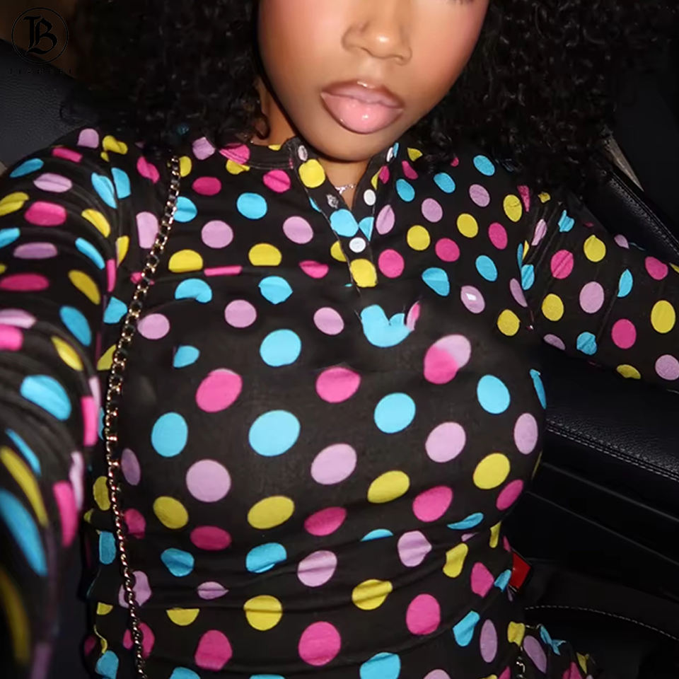 Completo Set Loungewear Donna Y2K Primavera 2026 con Logo Personalizzato, Top a Maniche Lunghe a Pois e Shorts Coordinati con Fascia per Capelli - Edizione San Valentino