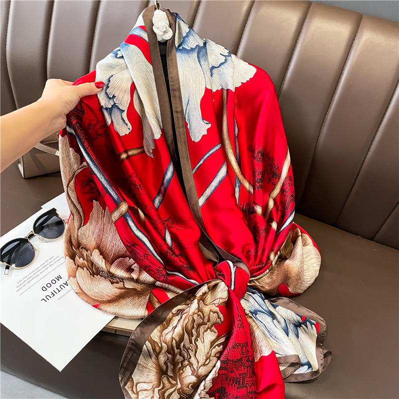 2026 Spring and Summer Long Pattern Printed Scarf 90*180cm Silk Custom Pattern Fashion Designer Foulard En Soie Women Silk Scarf