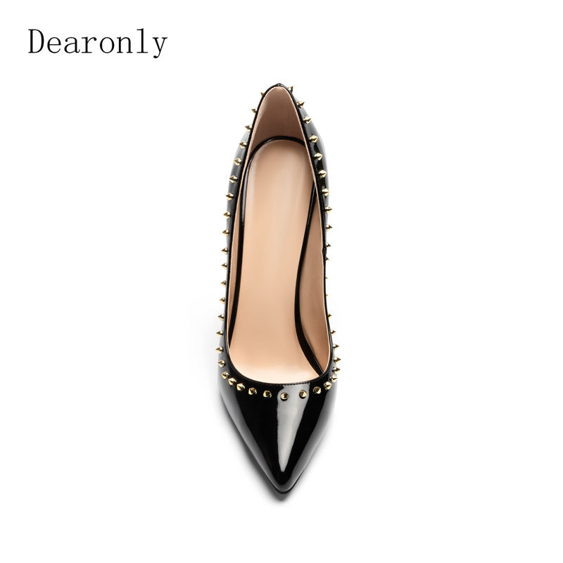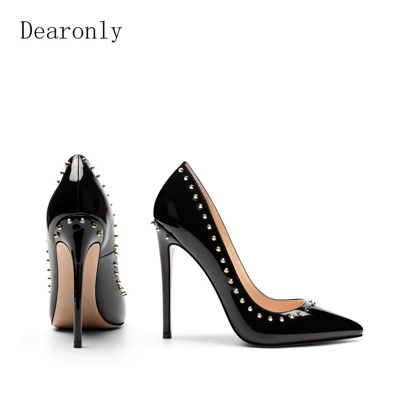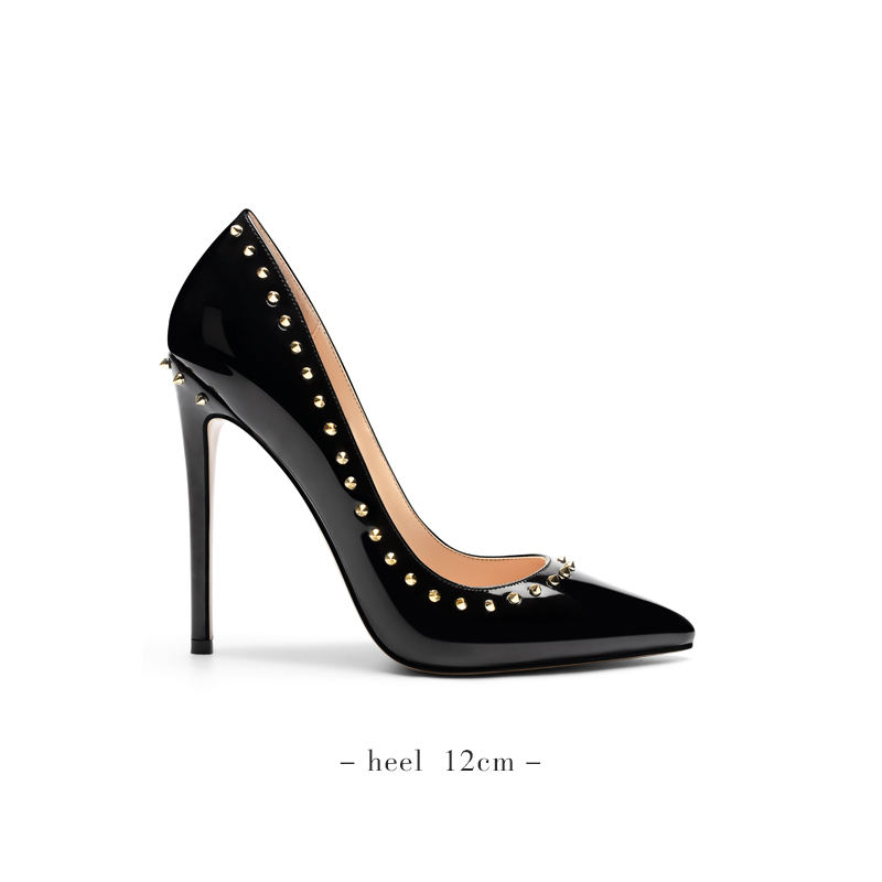 Scarpe con Tacco a Spillo 2026 in Pelle Verniciata Leopardata con Borchie, Punta Affusolata, Décolleté da Donna