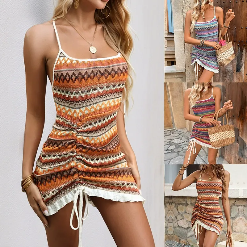 Abito Estivo da Spiaggia 2026 con Spalline all'Uncinetto, Vestito Etnico Ricamato Sexy