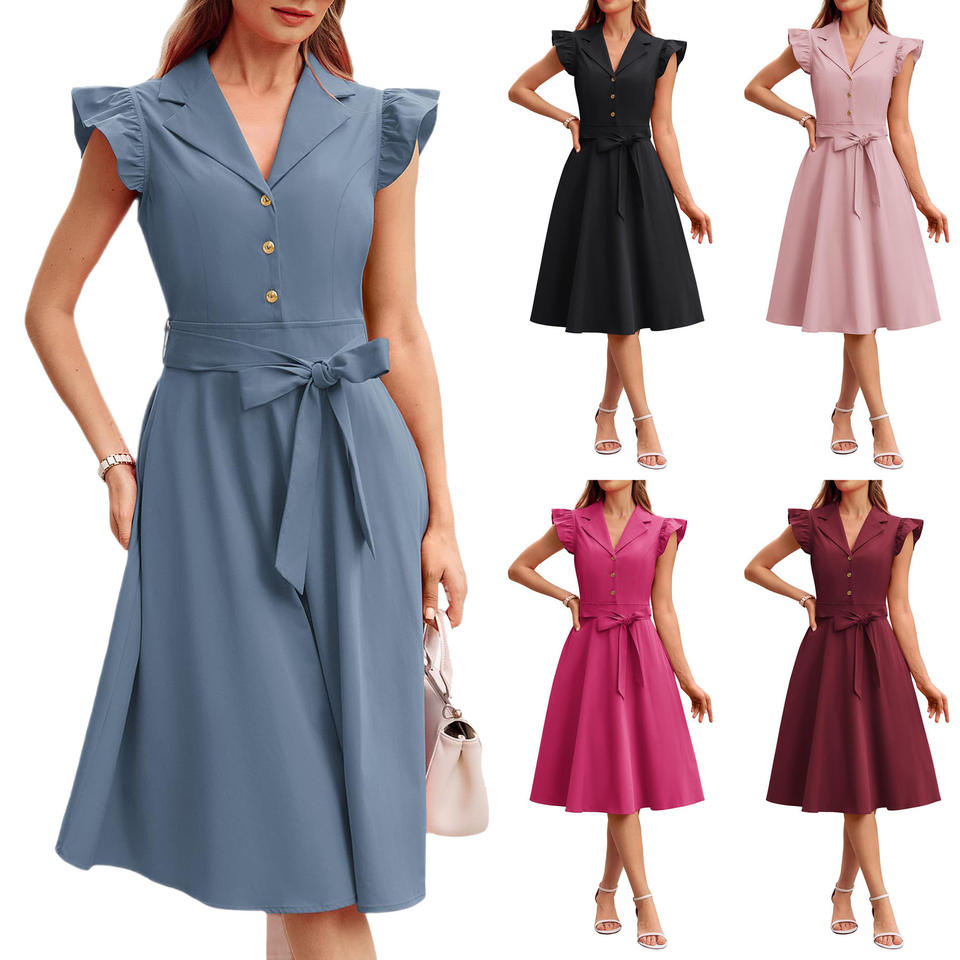 Abito Estivo 2026 Stile Europeo-Americano a Trapezio con Elegante Scollo a V, Vestibilità Slim, Senza Maniche, Design Lungo da Donna in Poliestere