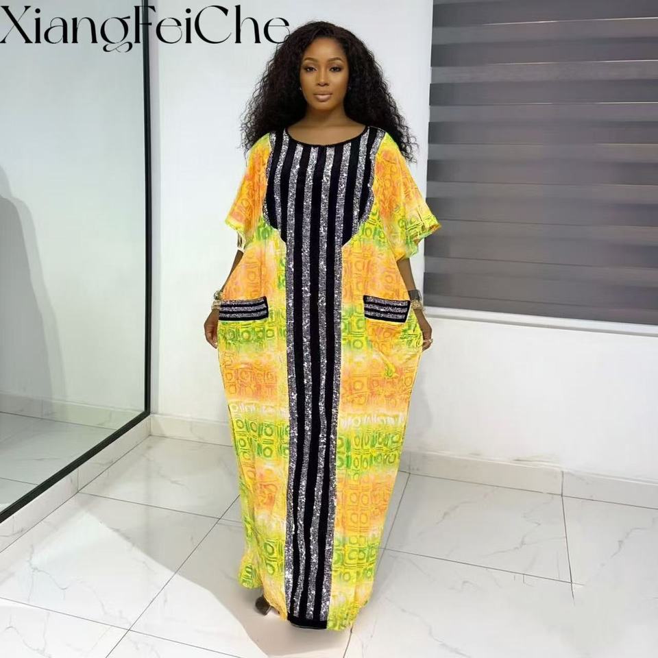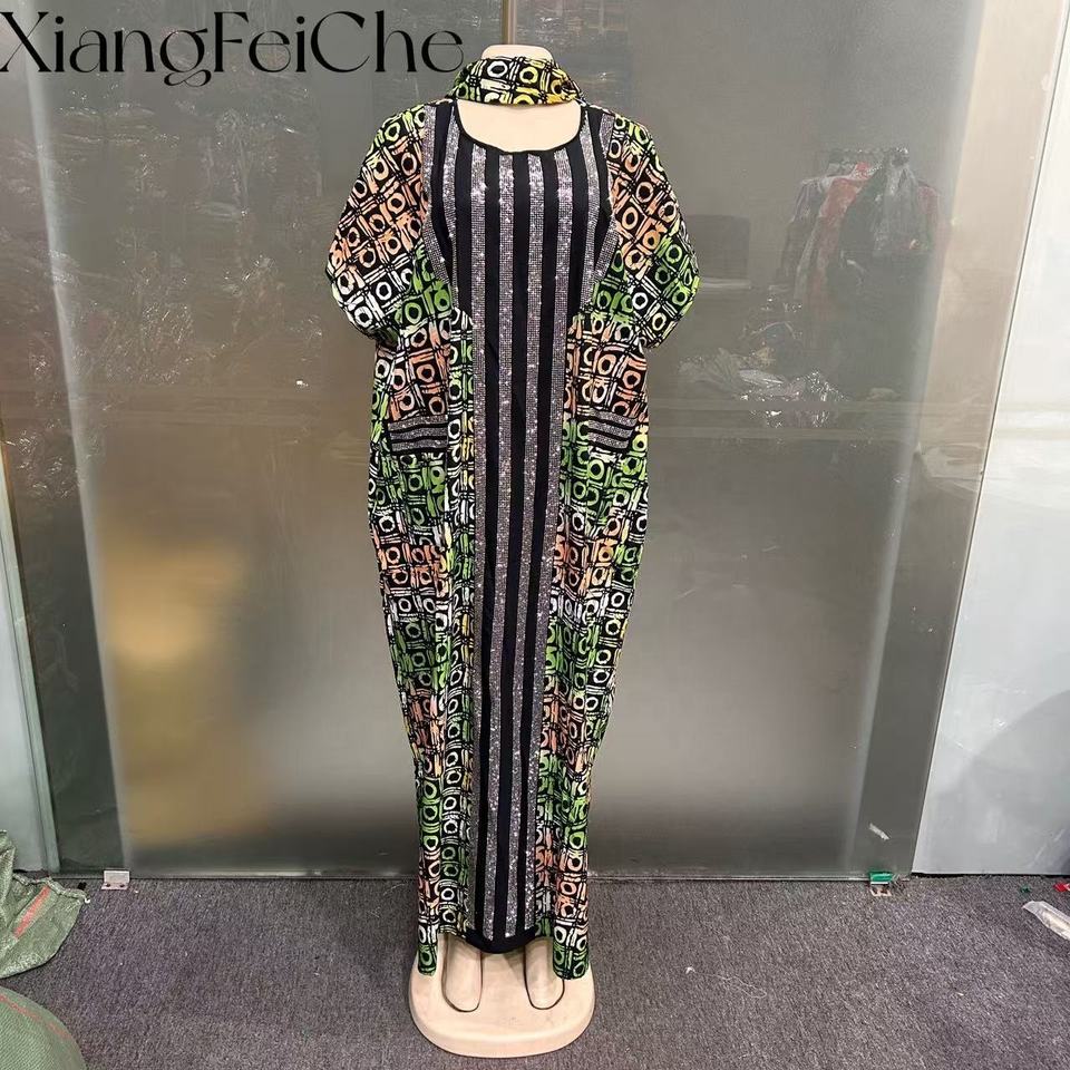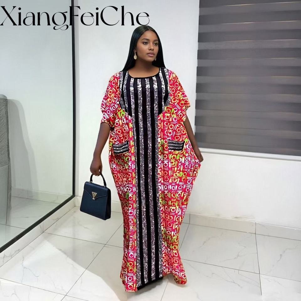 2026 Summer Fashion Casual Loose Ethnic Print Party Robe African New Style Diamond Women's Bubu Dress