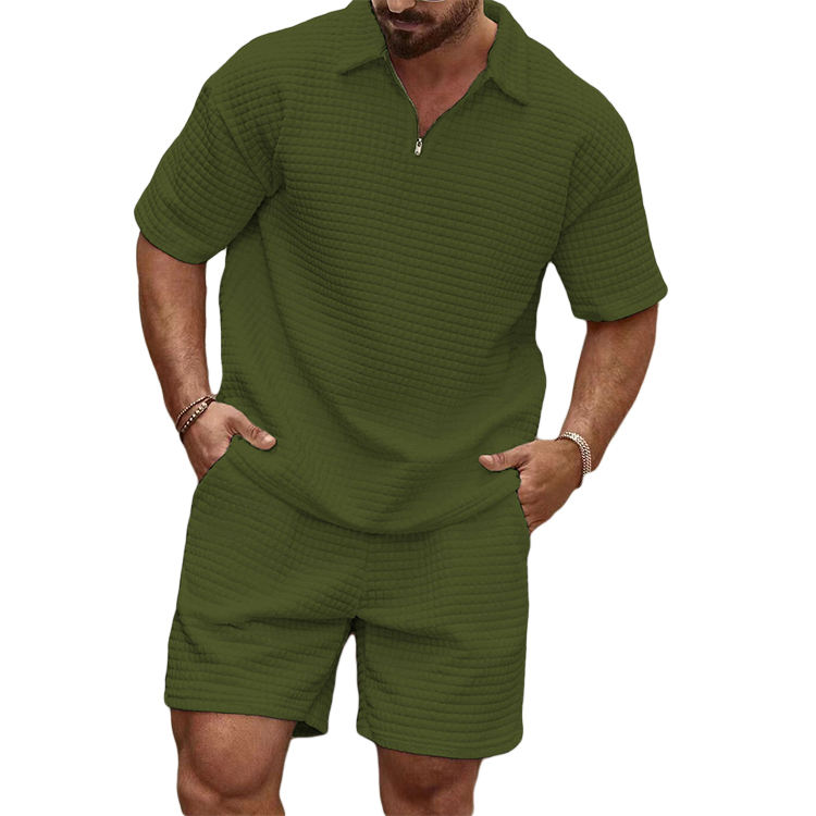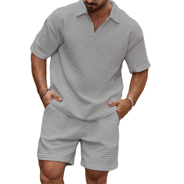 2026 Summer Men'S Casual Plus Size Tracksuits Waffle Blank Polo Shirt Sports Suit Jogging 2pcs Training Shorts Sets for Man