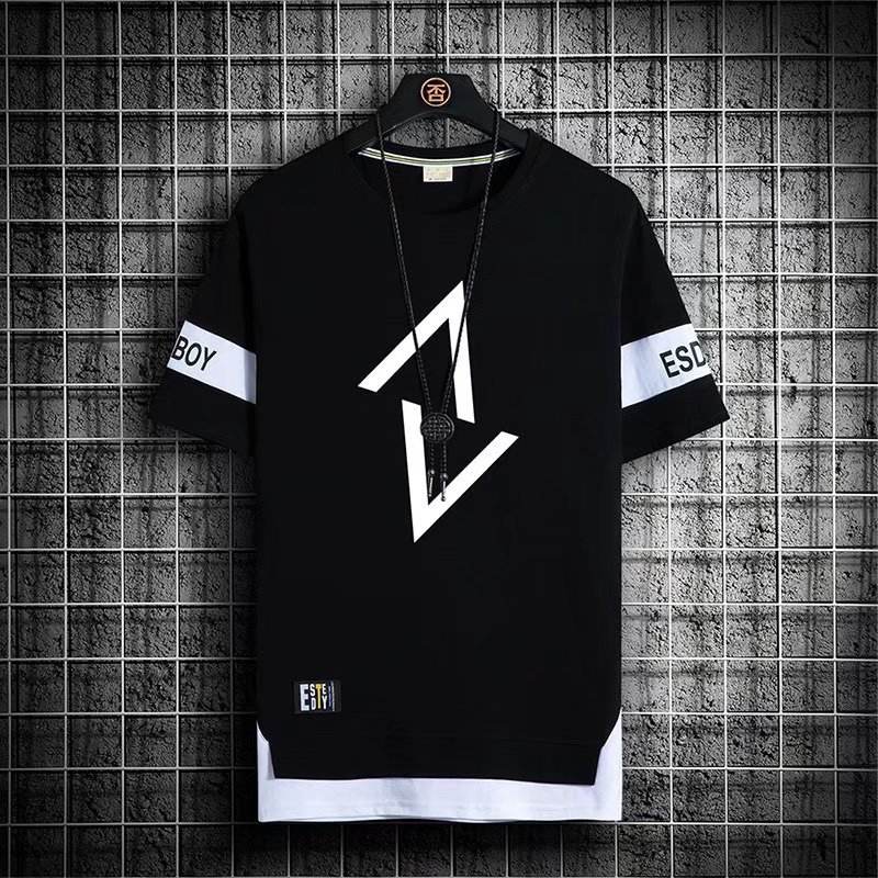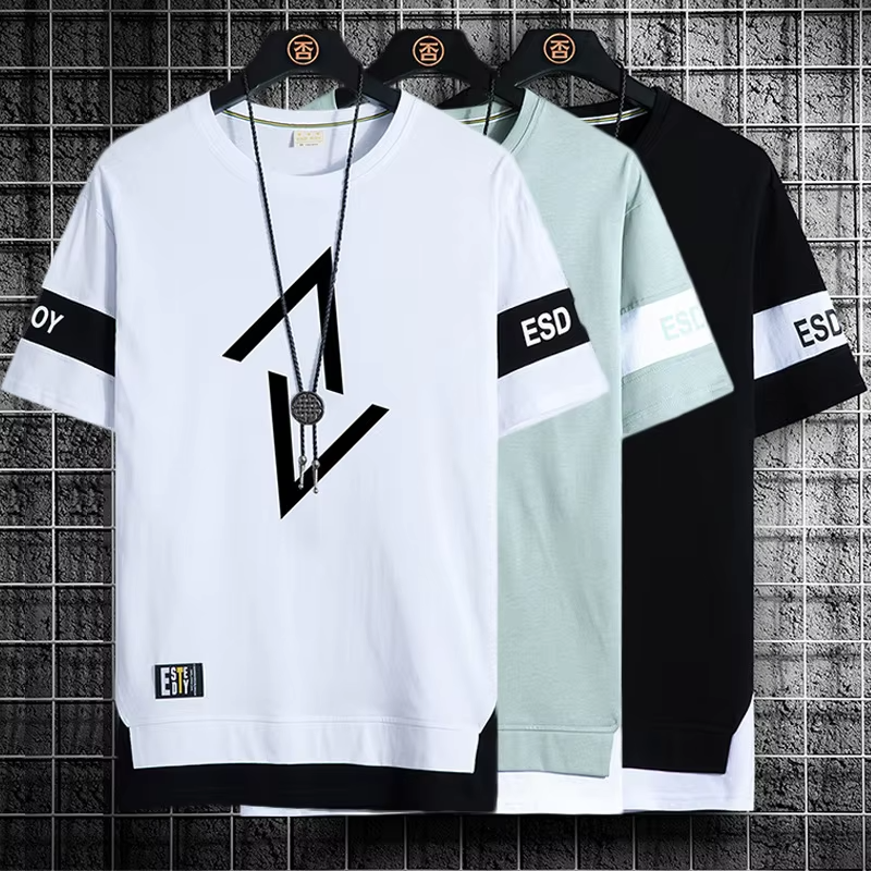 T-shirt Casual da Uomo Elegante Nuova Collezione Estate 2026, Maglietta in Cotone a Maniche Corte con Stampa Geometrica e Girocollo per Streetwear Quotidiano