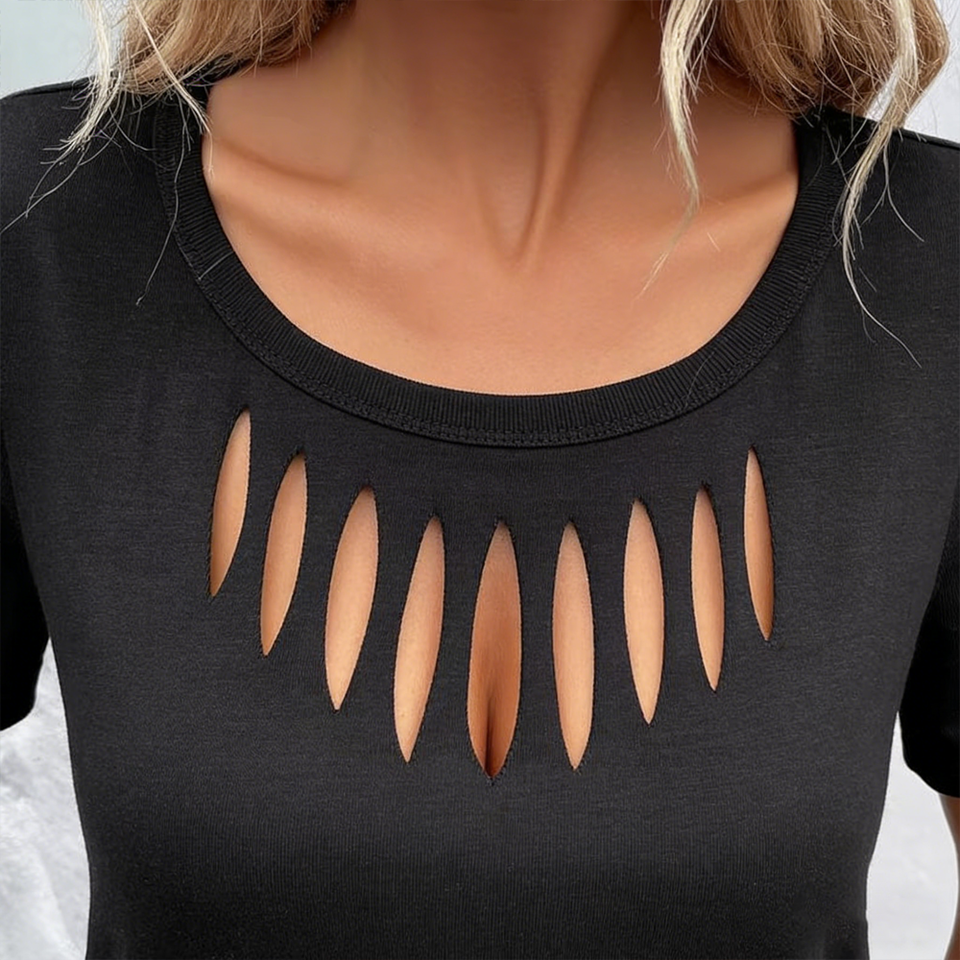 2026 Summer Women Oversized Short Sleeve T-Shirt Solid Color Casual Top with Chest Cut Out Design Fashion Hollow Out Wholesale