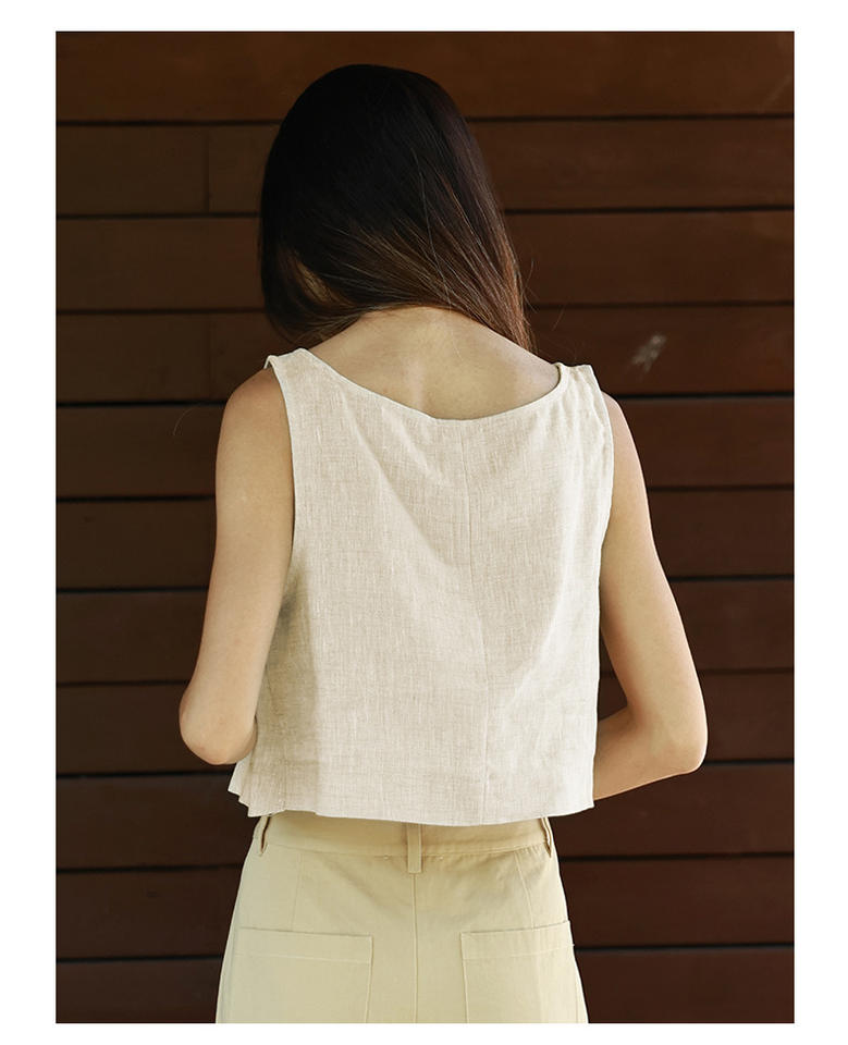 2026 Summer Women's Base Linen Vest T Shirt Slim Solid Color All-match Blank Tee Shirt Cropped Tops