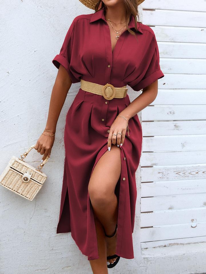 2026 Summer Women's Clothing Midi Dress Fashion Lapel Single-breasted Short Sleeve Dresses Elegant Casual Wear