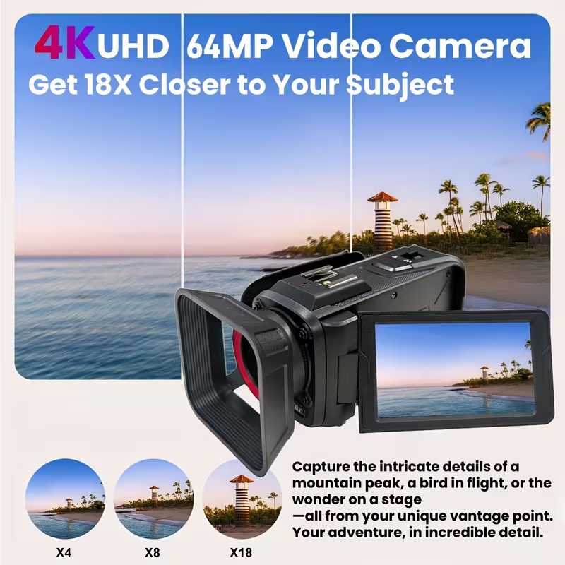 Videocamera Digitale WiFi 4K Super 2026, Fotocamera 4K 64MP con Immagine ad Alta Definizione, Schermo da 3 Pollici 270° ° Fotocamera con Schermo Rotante e Zoom Digitale 50x