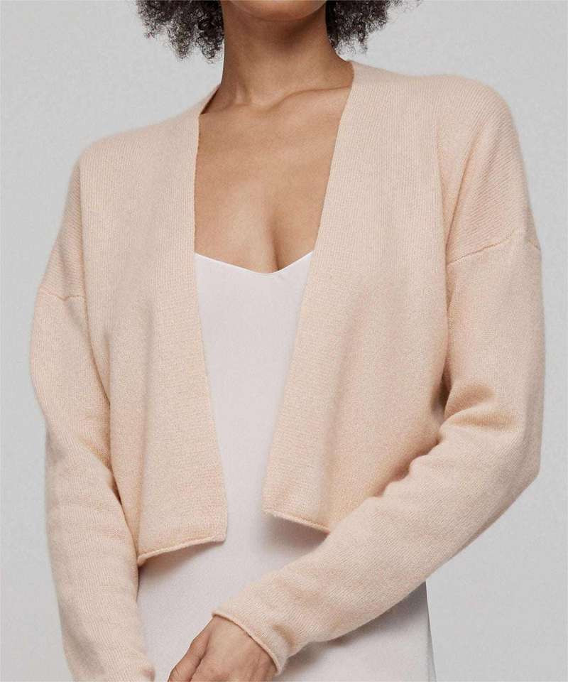 Product Name:White Lightweight Open Front Merino Wool Cropped Cardigan For Women
