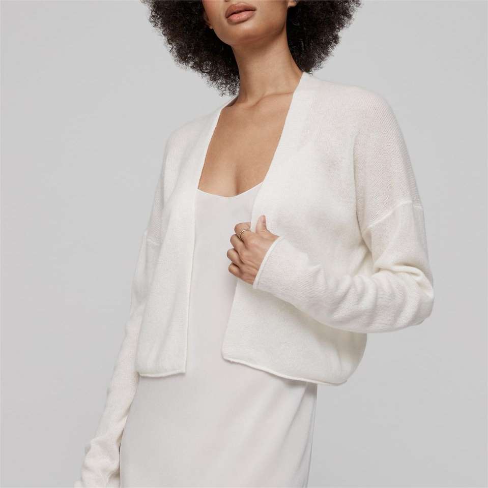 White Lightweight Open Front Merino Wool Cropped Cardigan For Women