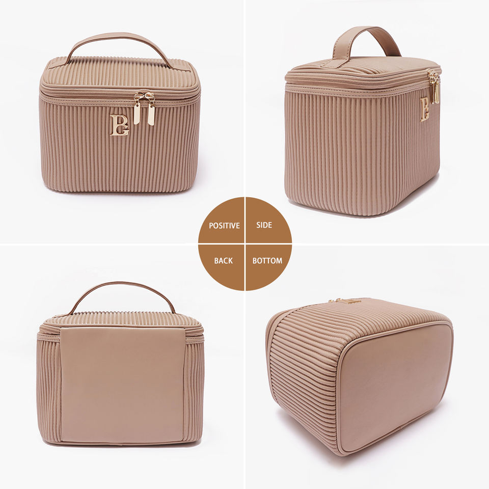Ammaesto Eco Friendly Personalizzato Viaggio Borsa Cosmetica Donna Grande Capacità Zipper PU Plissato Impermeabile