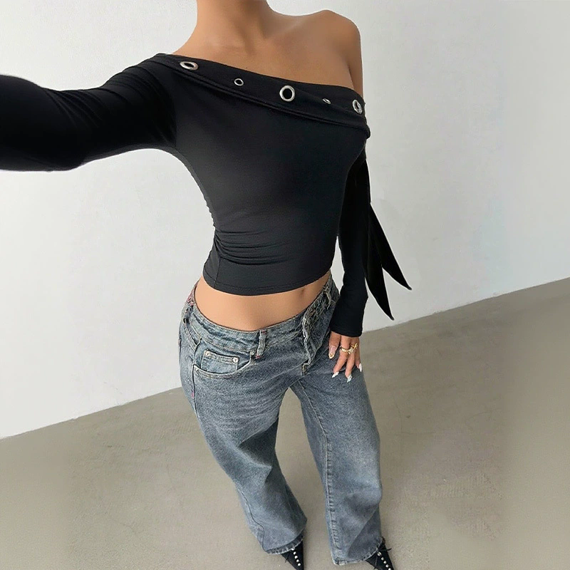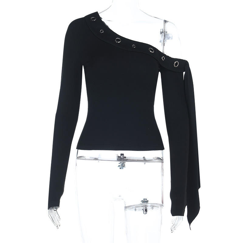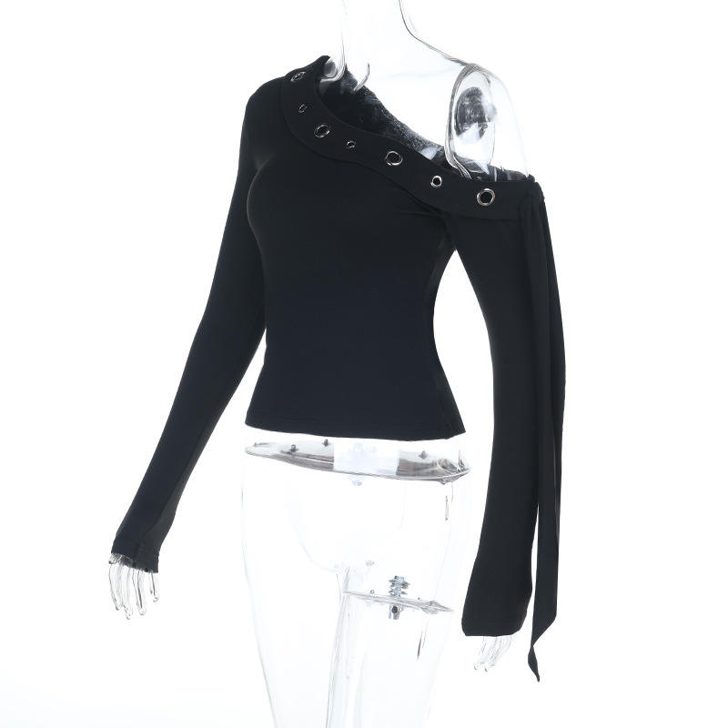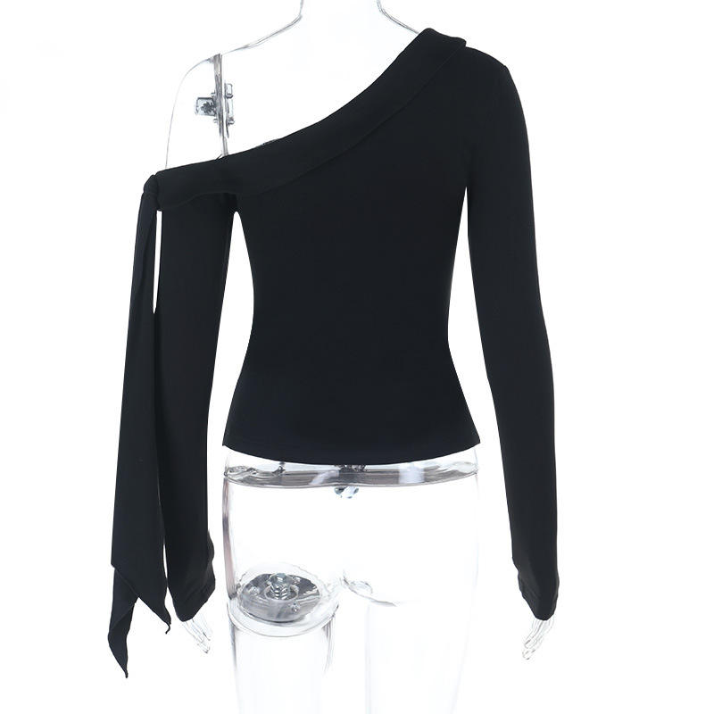 2026 prodotto di tendenza da donna vestiti primaverili Slant spalla a manica lunga blusa e top neri