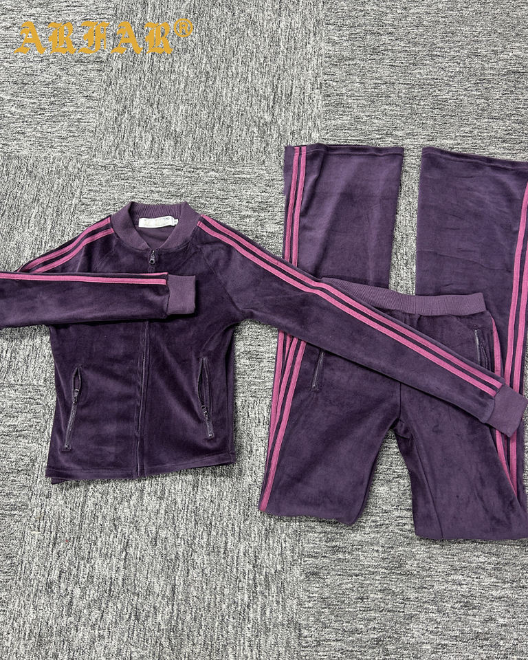 2026 Valentine's Day Women's Velvet Tracksuits Set Custom Striped Velour Baseball Uniform Jacket Pants Women Clothing