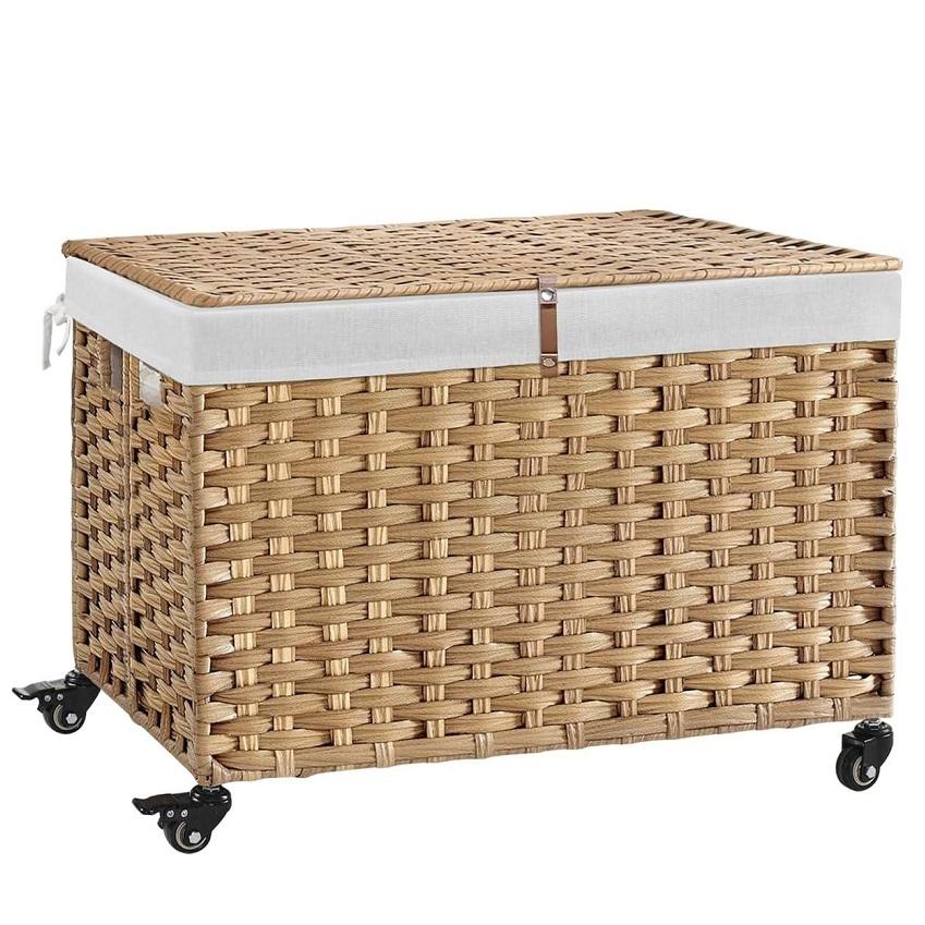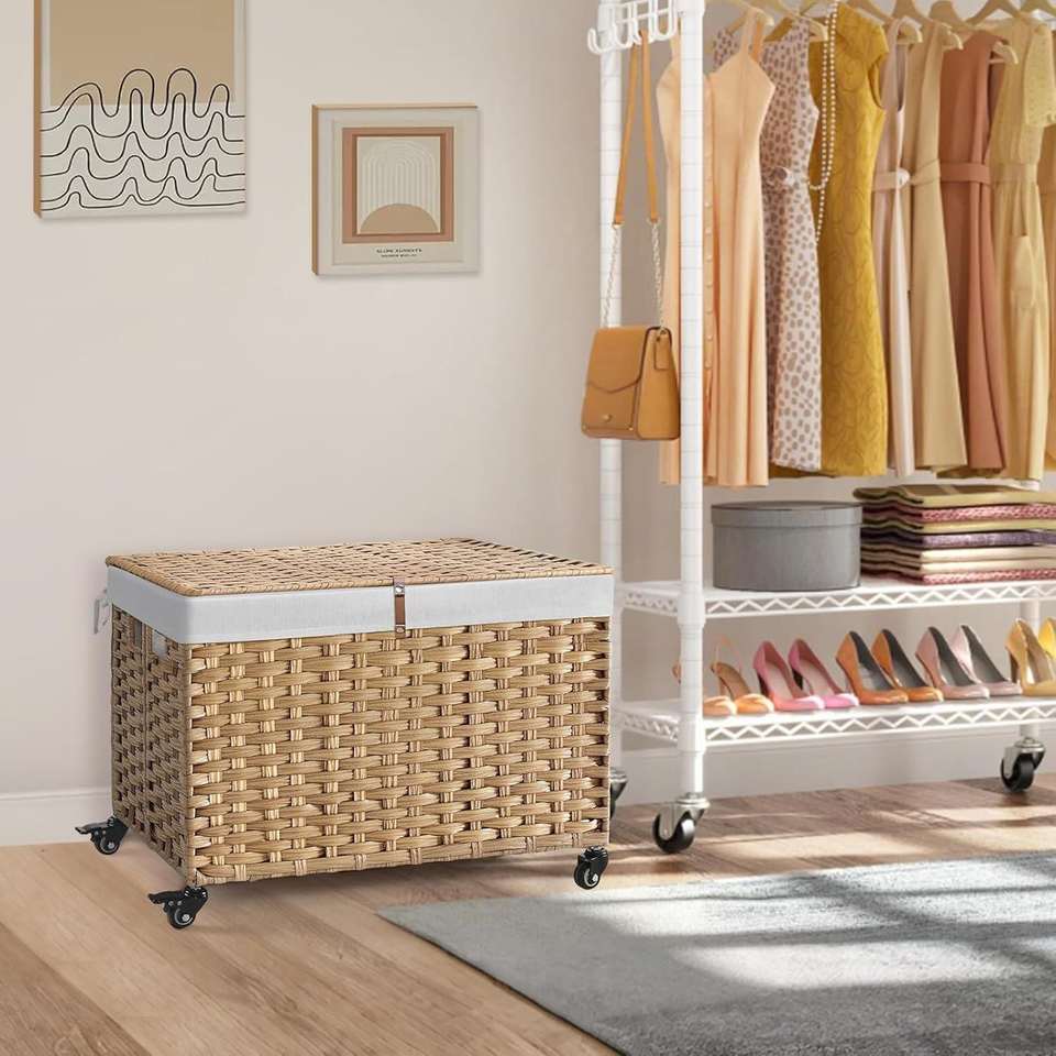 Foldable Metal Frame Lid Wheels Handles Removable Liner Laundry Basket