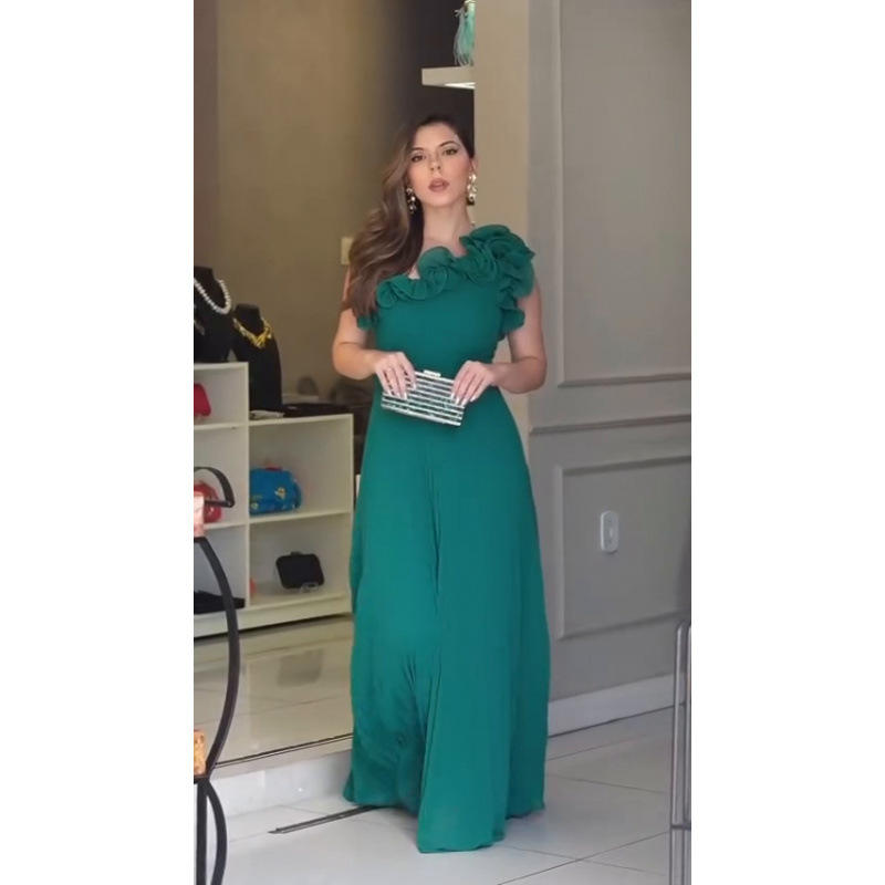 2026 Women Solid Pattern Collar Flower Sleeveless Maxi Dress Breathable Casual Pleated Design for Girls Summer Season
