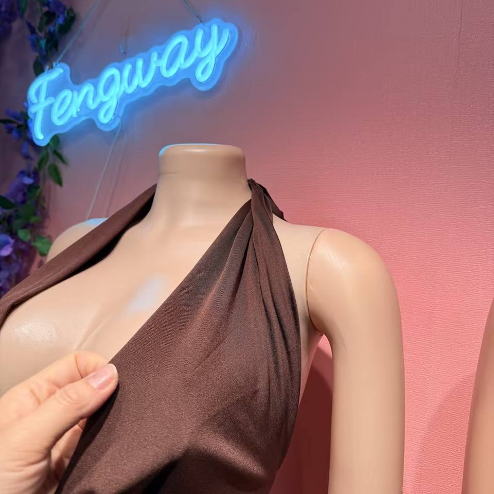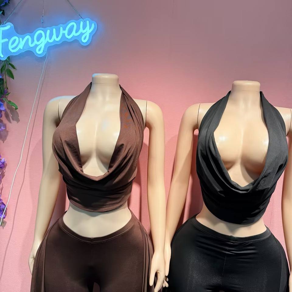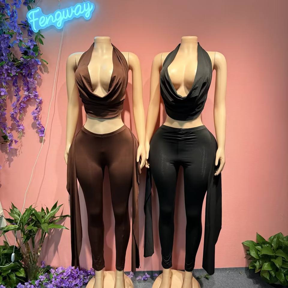 2026 Women Swing Collar Sleeveless Backless Halter Tank Top+Ribbon Pants Stretch Sexy 2 Piece Set