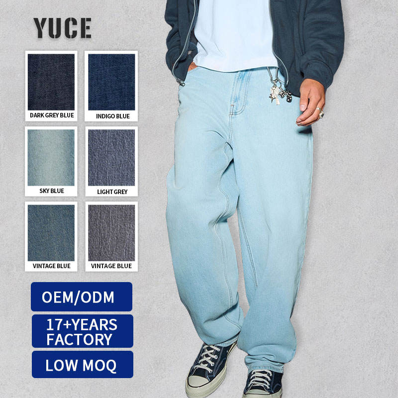 Jeans da Uomo YUCE 2026 Nuovo Design in Denim Azzurro, Pantaloni da Cowboy in Cotone Lavato a Gamba Dritta, Jeans Casual Larghi