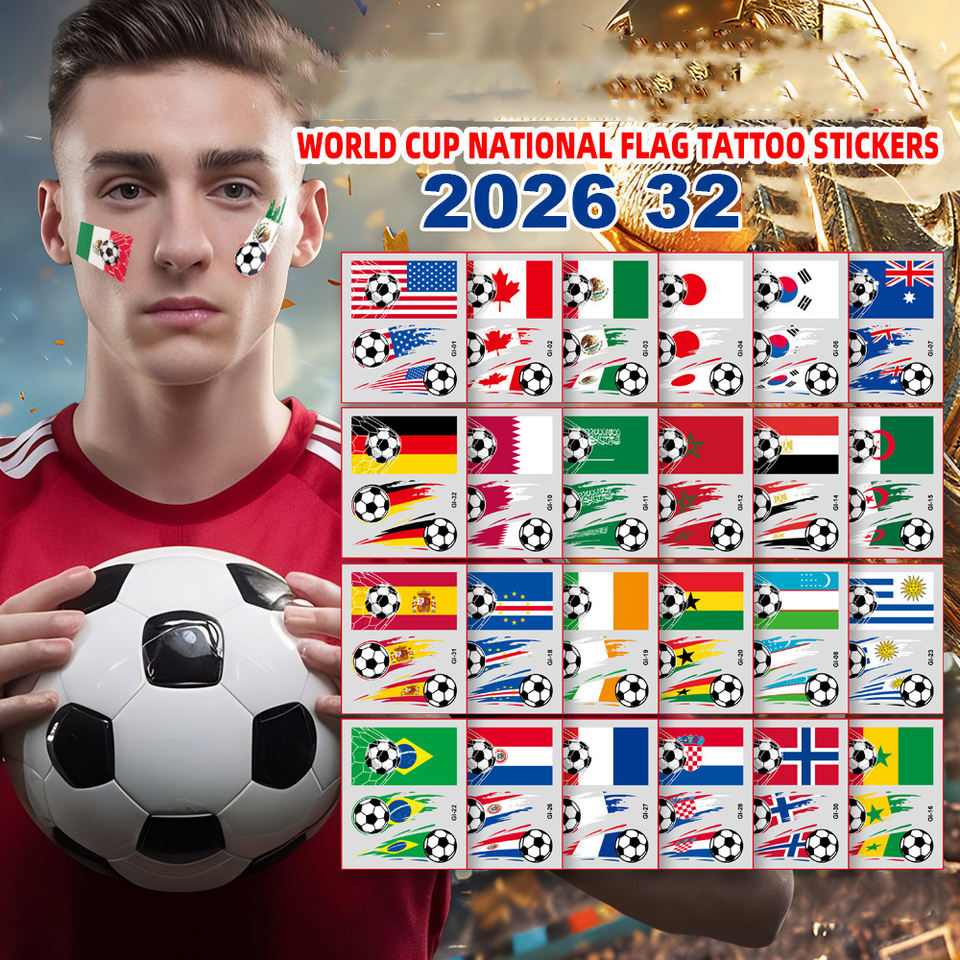 Tatuaggio Patriottico Temporaneo per il Viso a Tema Calcio, con Stampa a Trasferimento ad Acqua della Nuova Bandiera Nazionale, Ecologico, per Eventi e Tifosi - Edizione 2026