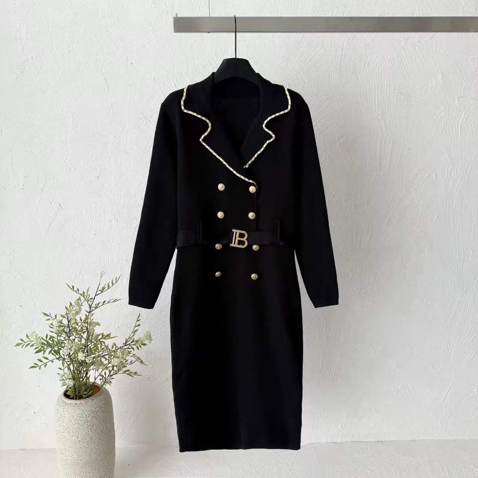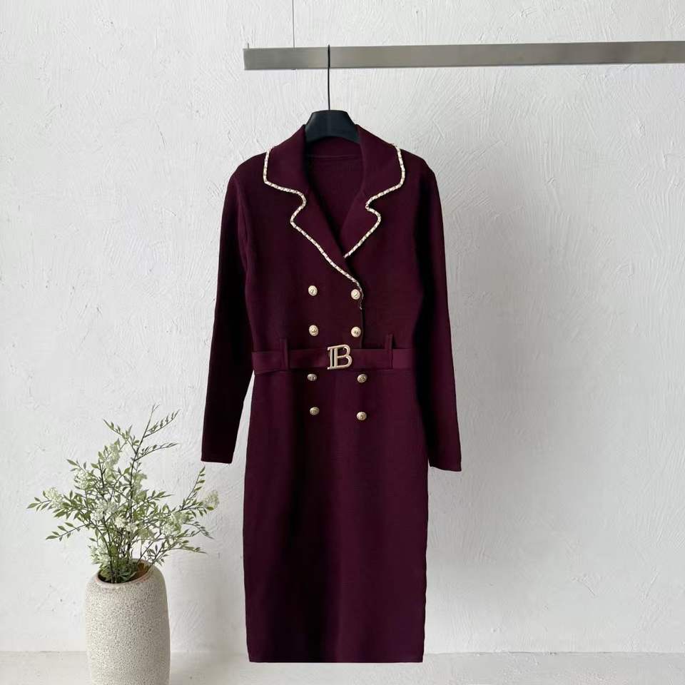 Abito in maglia a tinta unita da donna, stile 2026, con doppio petto, lunghezza media, elegante, modellante in vita e che esalta i fianchi
