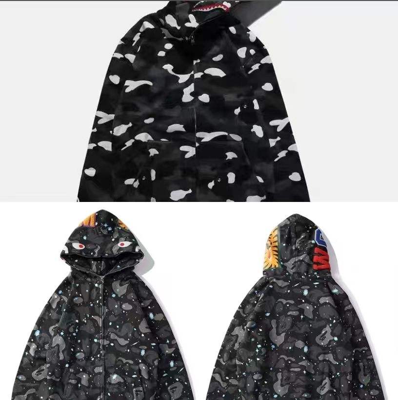 Felpa con Cappuccio BAPE Y2K Shark Zip-up di Alta Qualità 2026 da Uomo e Donna, 100% Cotone, Streetwear Unisex, Full Zip Bapaes Hoodies 1.1