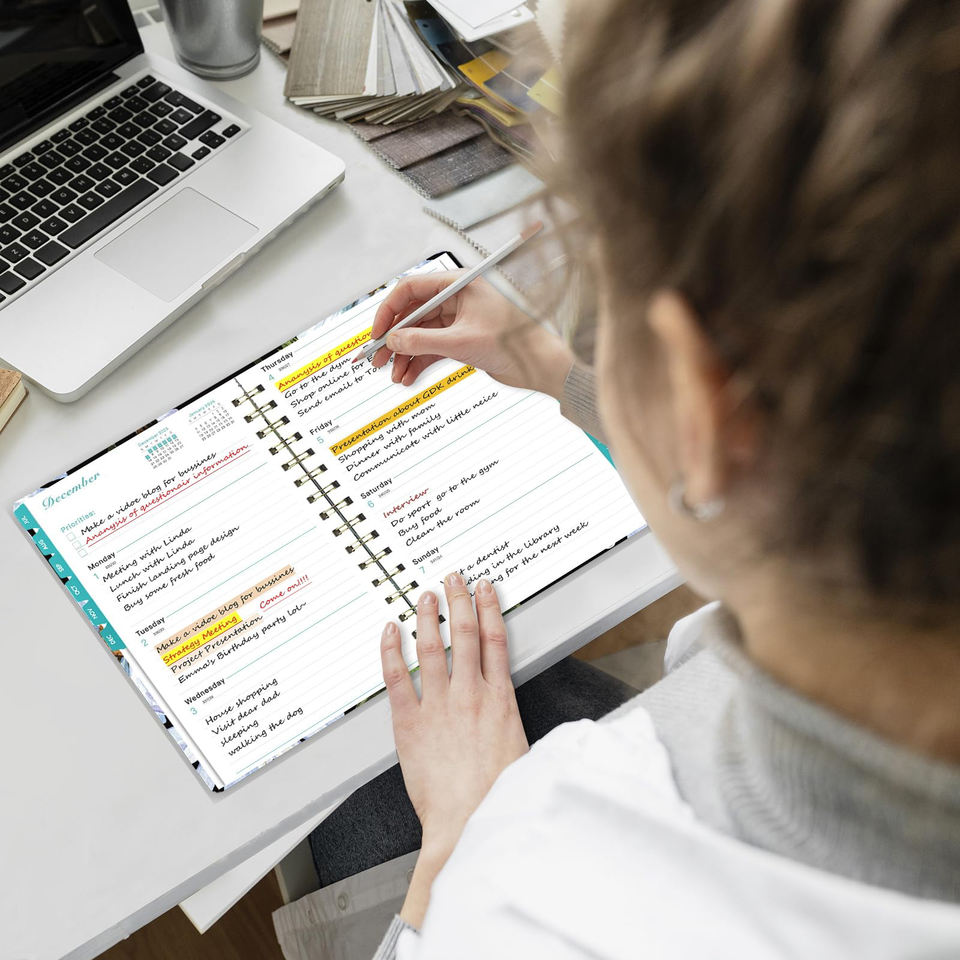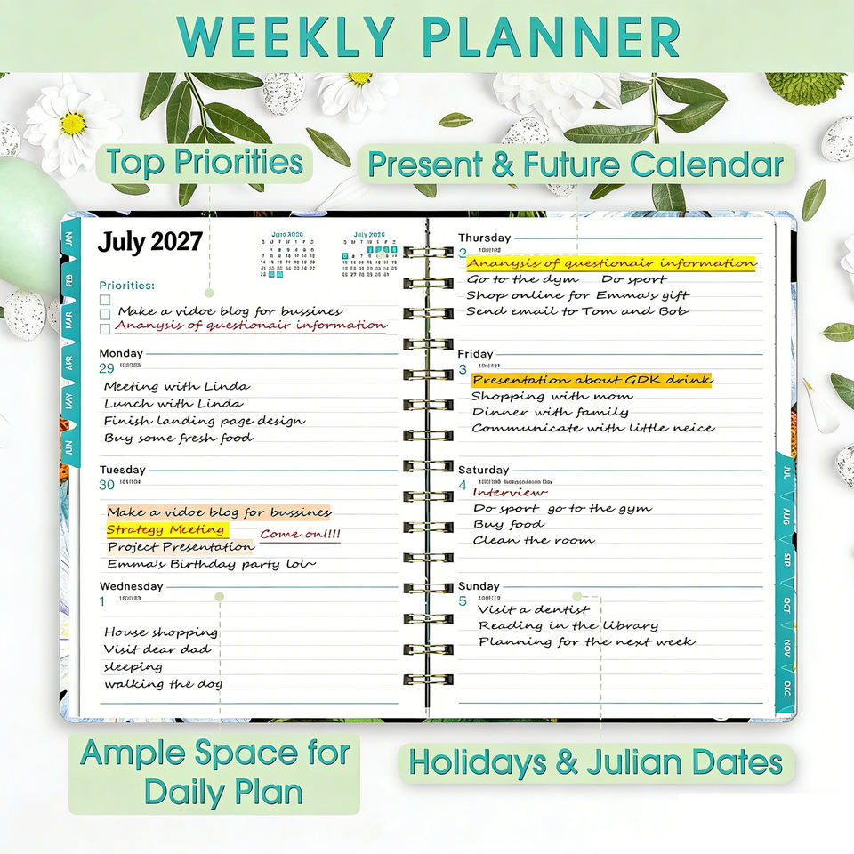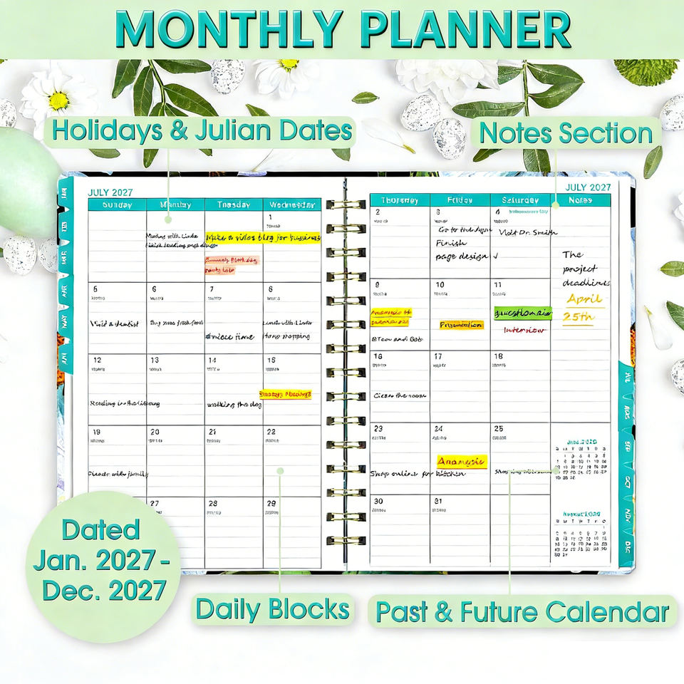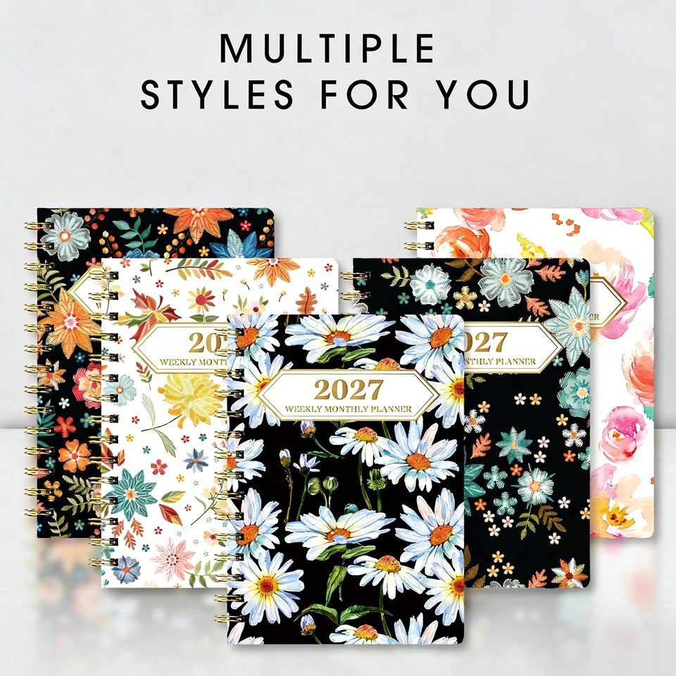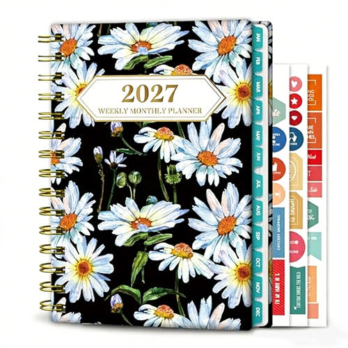 2027 High Quality Planner Weekly and Monthly with Floral Design Spiral Bound Inspirational Quotes Large Daily Blocks Gift