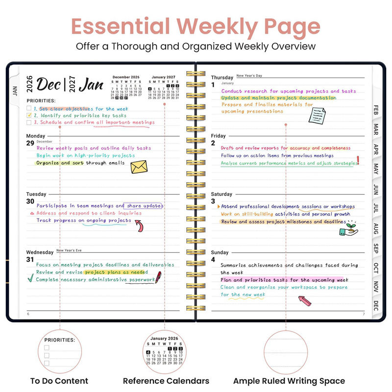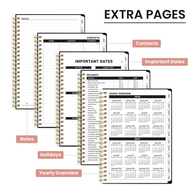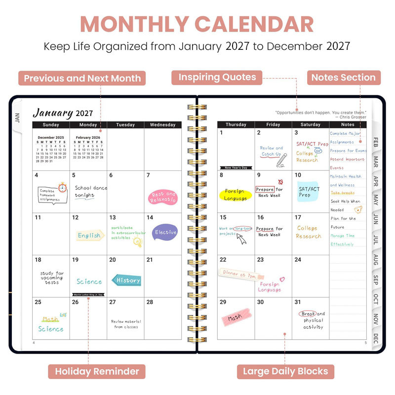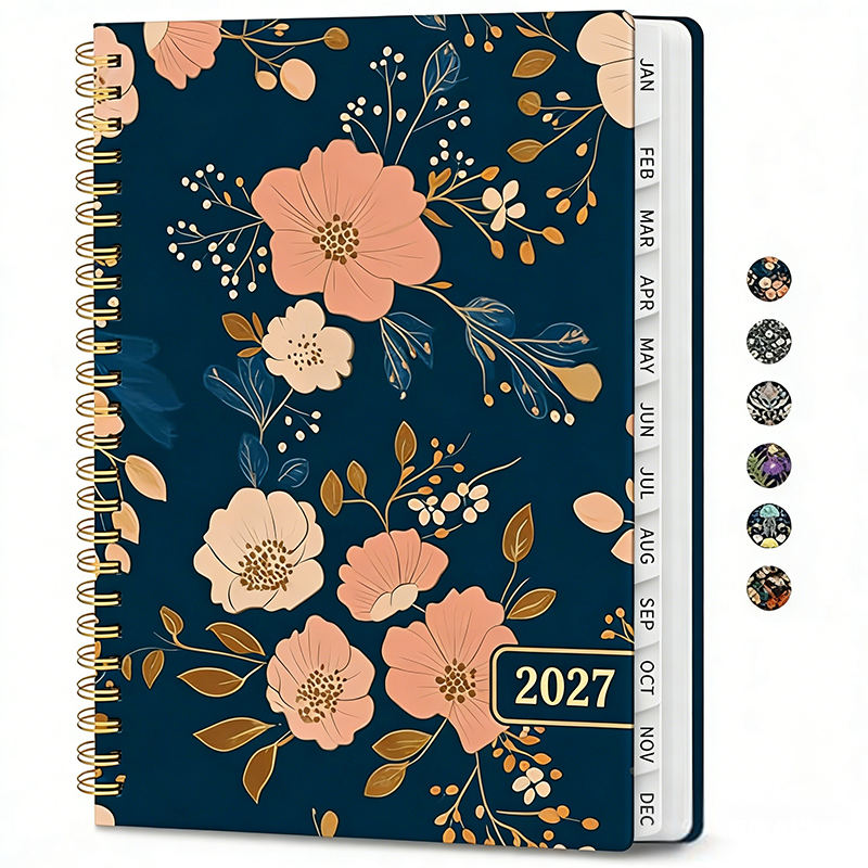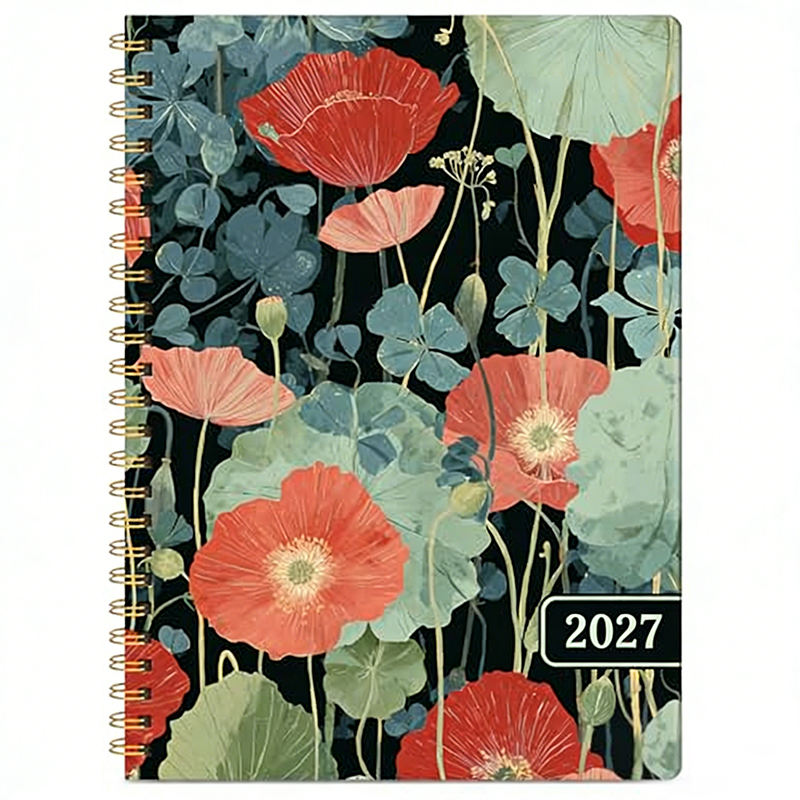 Agenda in Carta di Alta Qualità 2027 per Donne, Motivo Floreale, Rilegatura a Spirale, Calendario con Citazioni Motivazionali, Ampie Caselle per la Data, Regalo
