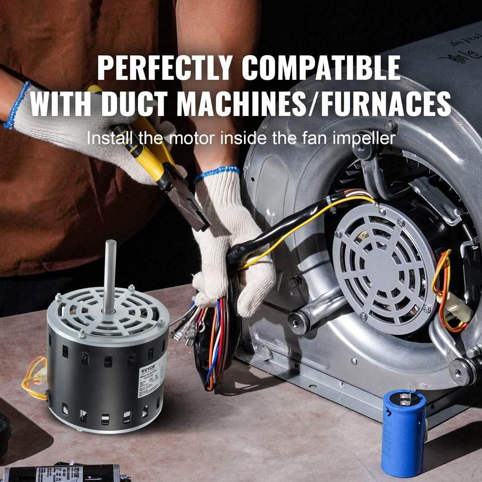 Motore per Ventilatore Forno 208/230V 1/2HP, 5 Velocità, Rotazione CW/CCW, Telaio 48, Lunghezza Albero 3.4\", 7.5 F/450V, Componente per Sistemi HVAC