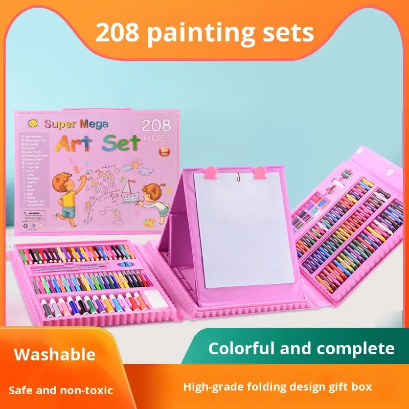 208 Pieces Pencils Crayons Watercolor Pens Elementary School Student Stationery Painting Set for Children