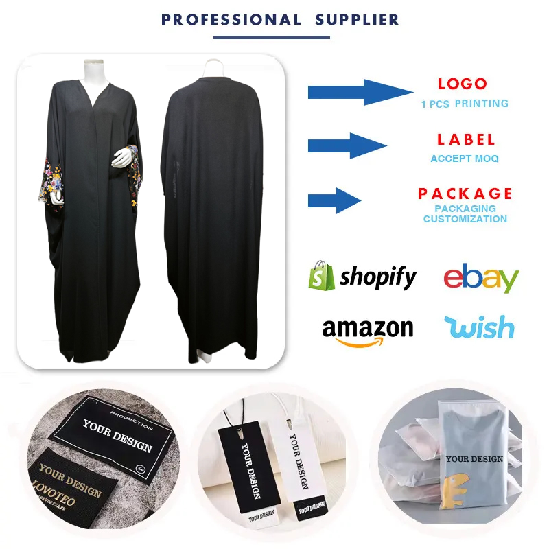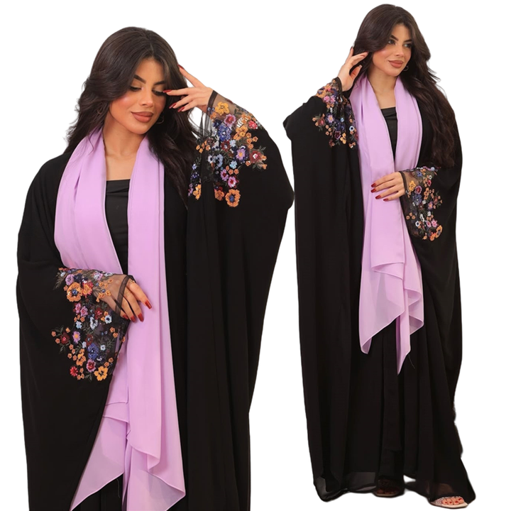 208 Trendy Summer Islamic Clothing Women Aya Muslim Dresses Embroidered Flower Sleeve Chiffon Kaftan Dresses Women Cardigan