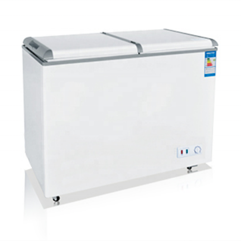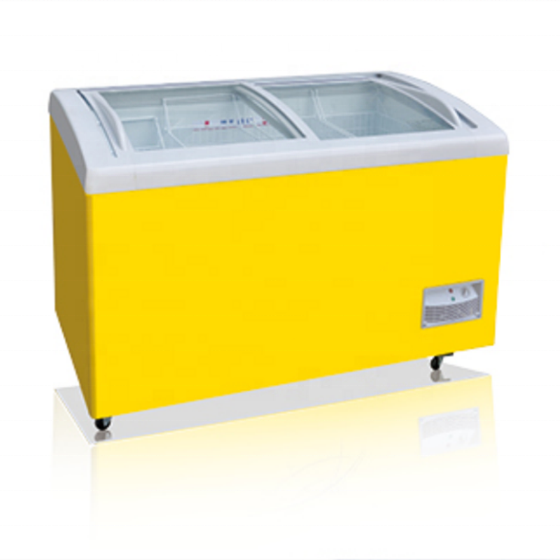 208L Commercial Supermarket Curved Double Glass Door Chest Deep Freezer Food Display Showcase Refrigerator Ice Cream Fridge
