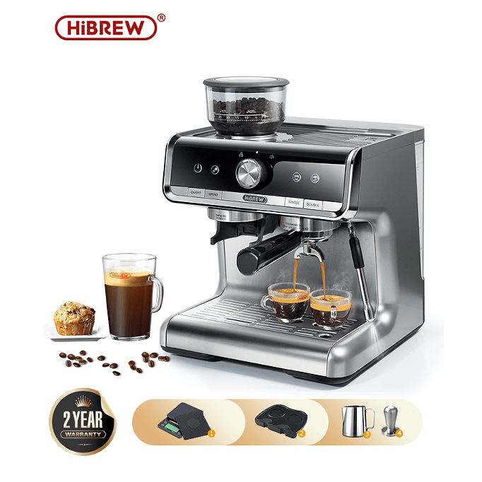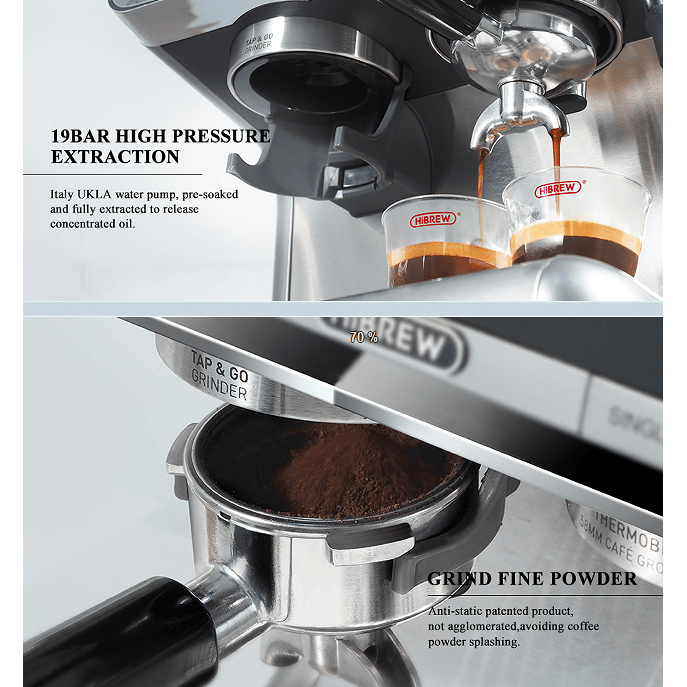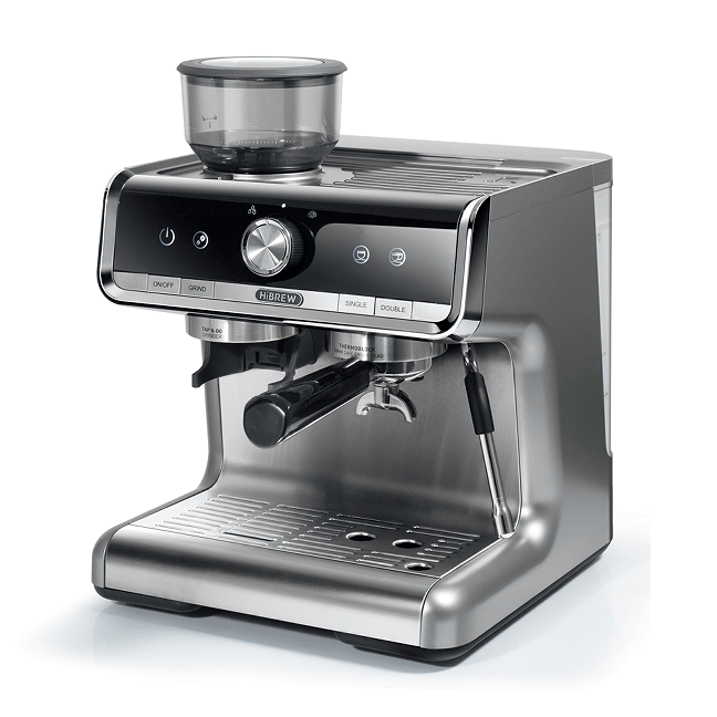 Macchina da Caffè Espresso Semiautomatica 20 Bar con Doppia Caldaia, Macinacaffè Integrato, Estrazione per Due Tazze, per Cappuccino Italiano LC