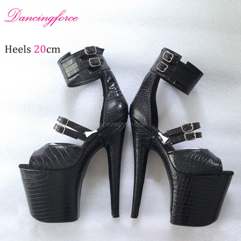 20CM Silver Chrome High Heel Platform Sandals for Women Peep Toe Sexy Exotic Pole Dance Shoes Ankle Strap Summer Season Style