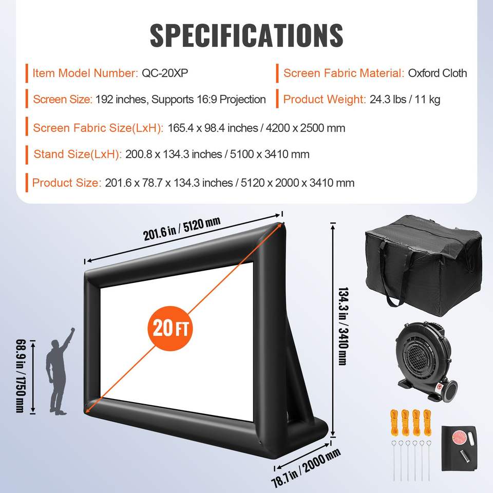 Schermo Gonfiabile per Proiezioni Cinematografiche da 20 Piedi in Tessuto Oxford, Schermo per Proiettore Compatibile con Ventilatore ad Aria da 350W, Schermi Gonfiabili per Proiezioni