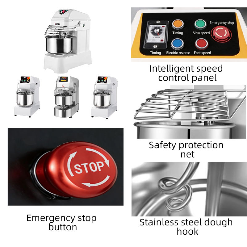20L 220V Digital Variable Speed Commercial Dough Mixer 8kg Capacity Stainless Steel Bowl Hook Bakery Use Overheat Protection