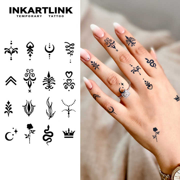 Set da 20 Pezzi di Eleganti Adesivi per Tatuaggi Temporanei, Ornamenti Vintage con Serpente, Rosa, Cuore, Luna, Semi-permanenti per 15 Giorni, Arte Corporea all'Ingrosso