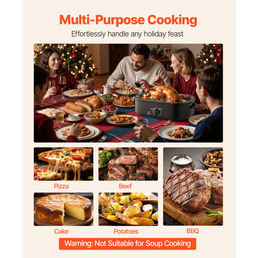 Forno Elettrico da Tavolo per Tacchino 20QT, Temperatura Massima 450°F, Potenza 1450W con Funzione di Temperatura Regolabile
