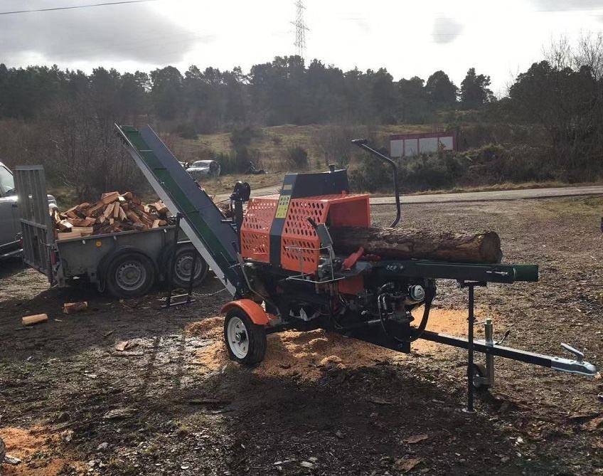 20Ton Horizontal Hydraulic Log Splitter with Conveyor ; Hydraulic Manual Electric / Pto/ Gasoline Wood Splitter with Chainsaw