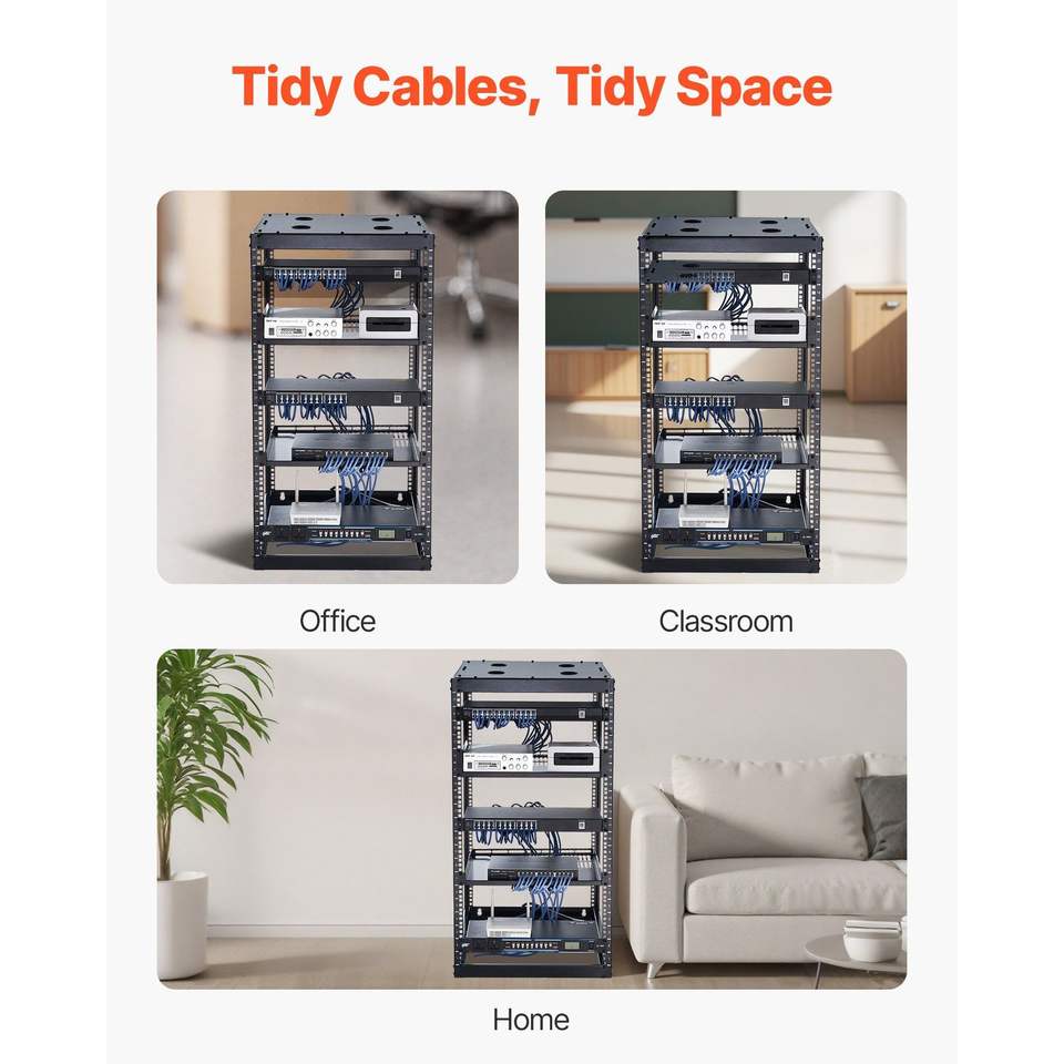 Rack di Rete Open Frame 20U con 4 Montanti, Montaggio a Parete o a Pavimento, Profondità 23 Pollici, Ripiani Ventilati Rinforzati