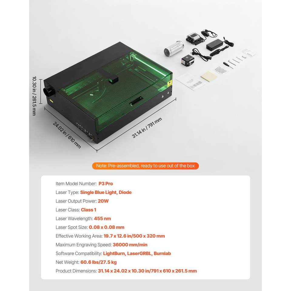 Incisore e Tagliatrice Laser 20W, 36000 mm/min, Area di Lavoro 19,7 x 12,6 cm, Telecamera, Macchina per Incisione e Taglio Laser ad Alta Velocità