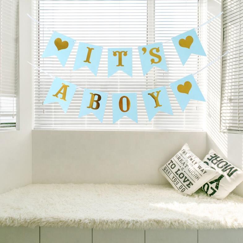 20X16cm Christening Baby Shower Garland Decoration Birthday Party Favors It's a Girl Boy Paper Garland Bunting Banner