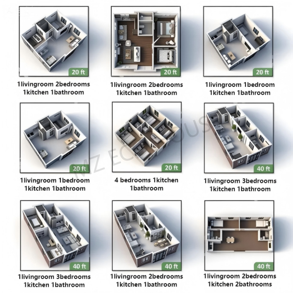 20ft Luxury Prefabricated Mobile Tiny Home Ready to Ship 2 Bedroom Bathroom Kitchen Folding Expandable Container House