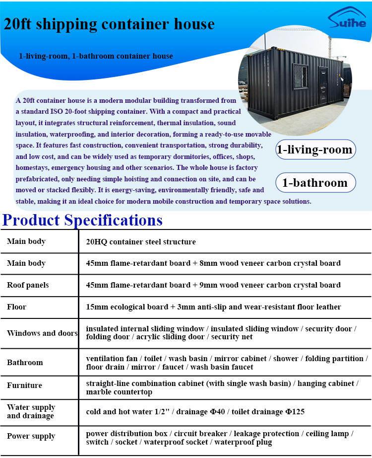 Casa Container Prefabbricata da 20 Piedi con Una Camera da Letto e Un Soggiorno per Esterni