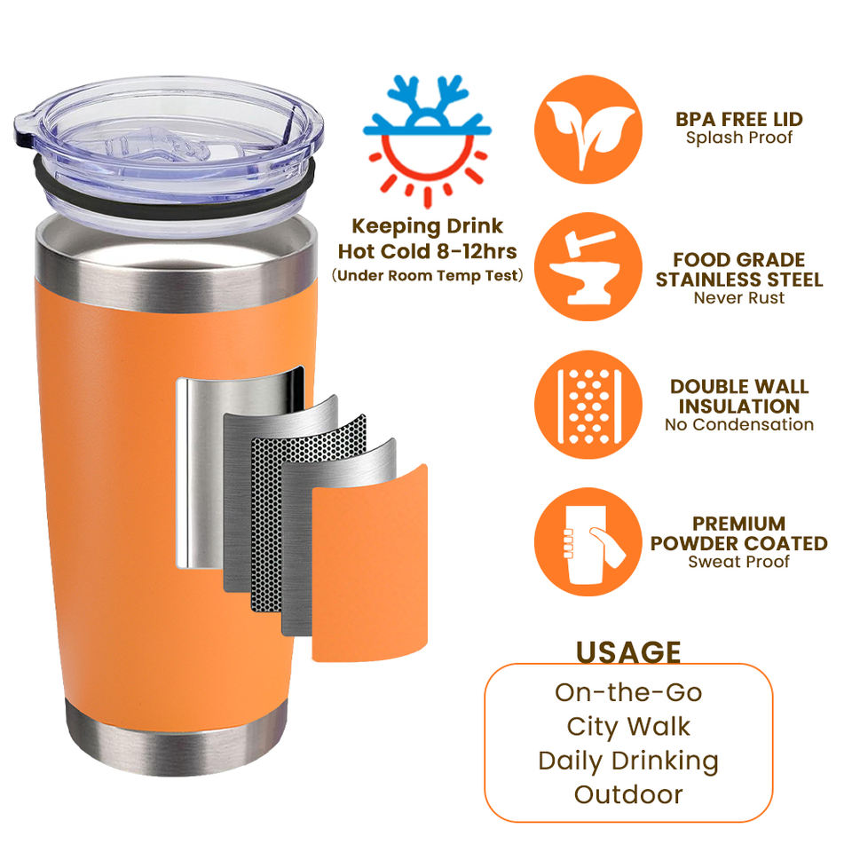 Tazza da Caffè Isolata 20oz 30oz in Acciaio Inox con Rivestimento in Polvere, Bicchiere Termico da Viaggio con Coperchio Magnetico