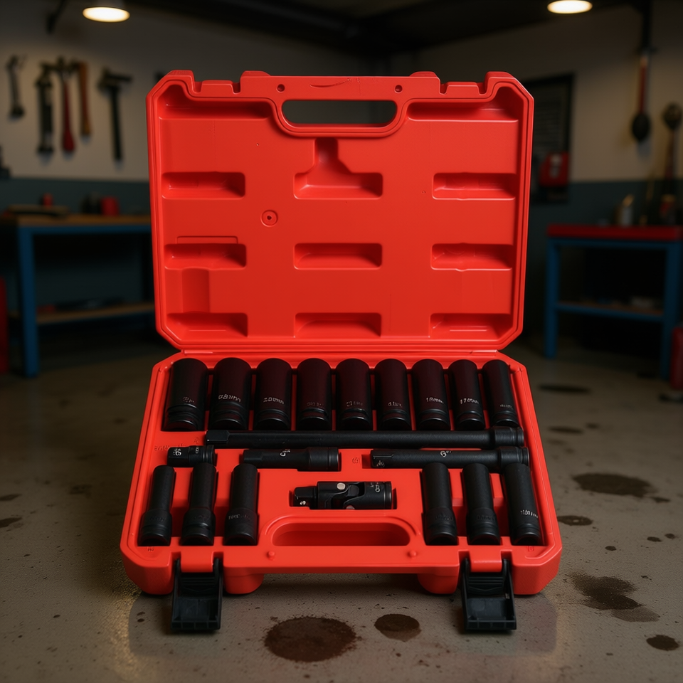 Set di 20 chiavi a bussola profonde da 1/2 pollice con barre di prolunga e giunto universale per meccanica automobilistica