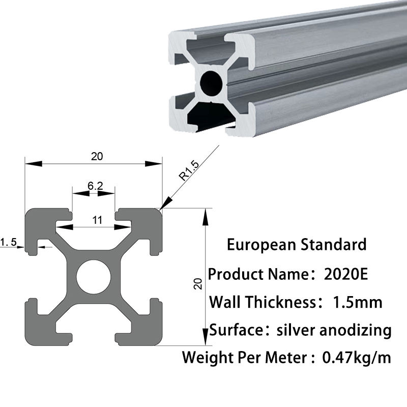 20x20 Aluminum Profile 6000 Series Industrial Modular Profile System 2020E with Cutting Service and Anodizing