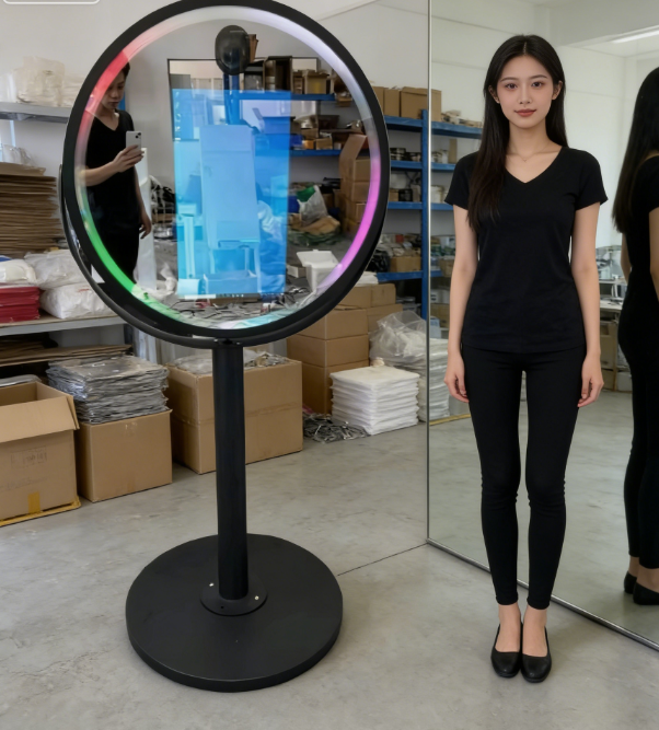 Specchio Magico Rotondo da 21,5 Pollici con Schermo Touch per Cabina Fotografica, Ideale per Matrimoni e Feste, Stampante e Fotocamera Opzionali, Imballaggio con Flight Case