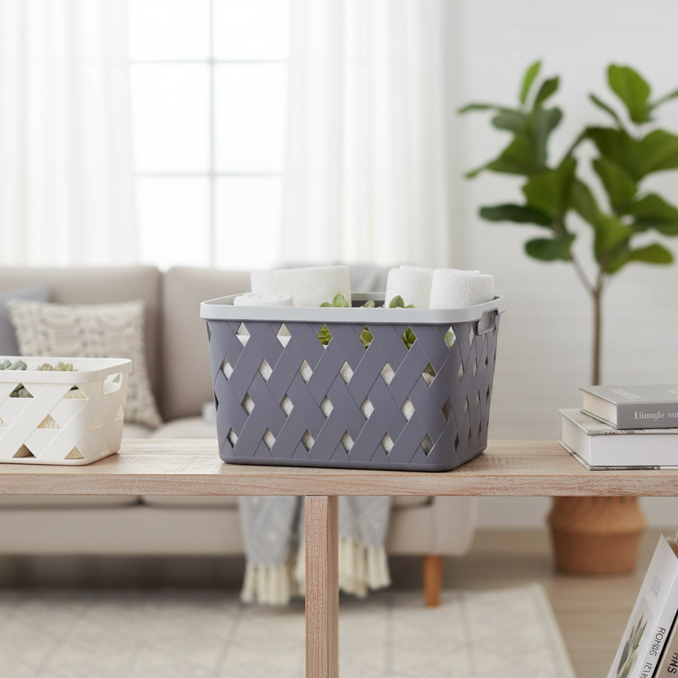 21.6*15.6*12\" Eco-Friendly Imitation Leather Storage Basket Foldable Modern Style PP/Cloth Storage Boxes for Home Use
