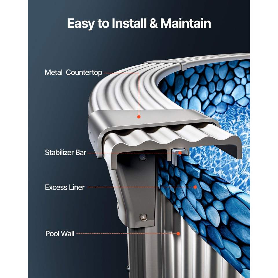 Telo di rivestimento per piscina fuori terra rotonda da 21 piedi, in vinile a sovrapposizione, spessore standard, per pareti con altezza 48-54 pollici, progettato con struttura in acciaio.