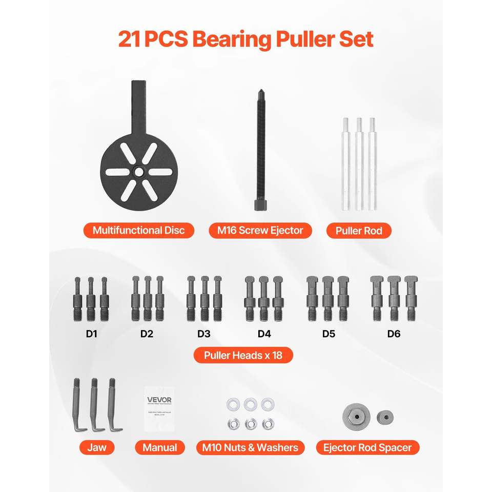 Set Estrattore Ingranaggi Multifunzione 21-in-1, 21 Pezzi, Gancio a 3 Griffe per Cuscinetti Interni ed Esterni, Albero Interno del Cuscinetto