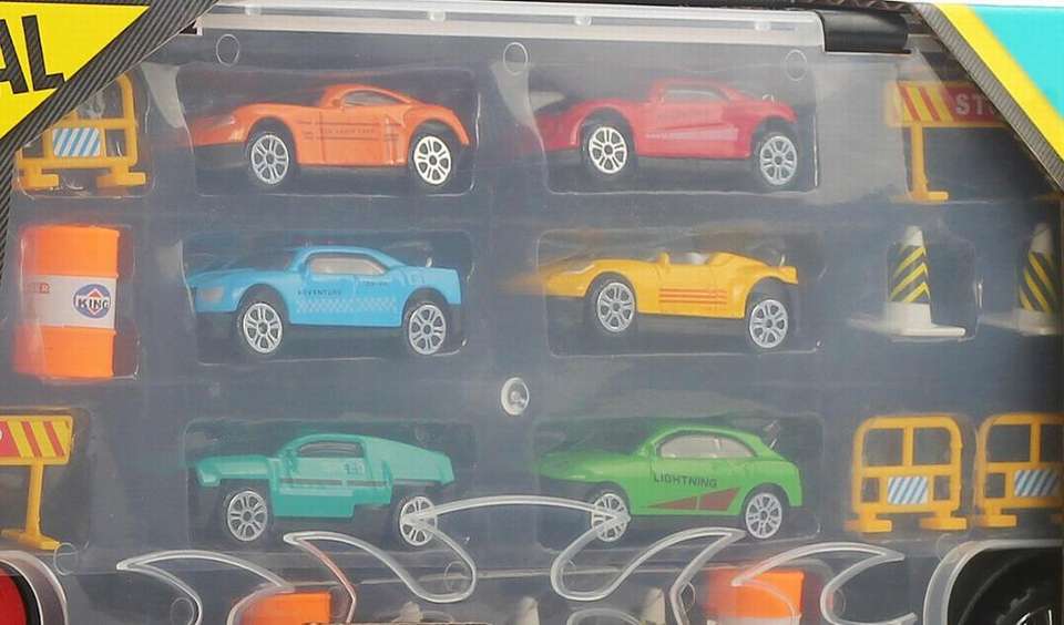 Camion giocattolo trasportino da 21 pollici con 6 macchinine e accessori-trasportatore di veicoli staccabili, addominali in plastica